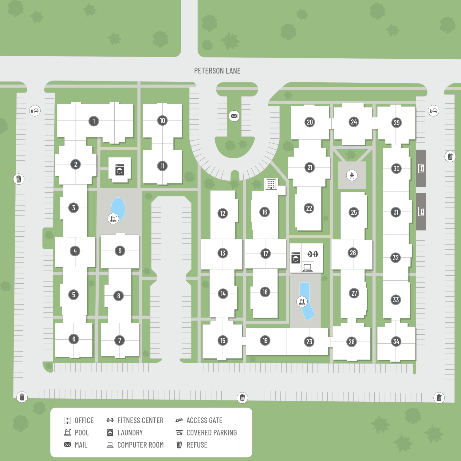 Select a floor plan or bedroom count to view those units on the overhead view on the site map.